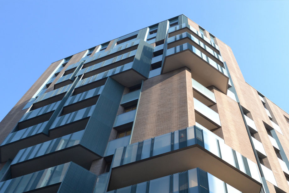 In a context of great urban transformation in the Porta Garibaldi area in Milan, the aluminium sheets of the parapets of the noveTREDICI complex in via de Cristoforis have been painted with an Arsonsisi polyester approved for Architecture and made in a particular metallic textured green.